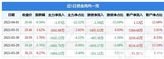 资金流向数据方面,上个交易日主力资金净流出1.97亿元,游资资金净流出1.39亿元,散户资金净流入1.12亿元。近5日资金流向一览见下表: